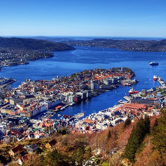 Ciudad internacional llena de historia y tradición, con el encanto y el ambiente de un pueblecito. Combina perfectamente la naturaleza con la cultura y con una intensa vida urbana. Bergen es conocida por Bryggen el muelle Hanseático, el mercado de pescado, las montañas circundantes y los fiordos Hardangerfjord y Sognefjord.
